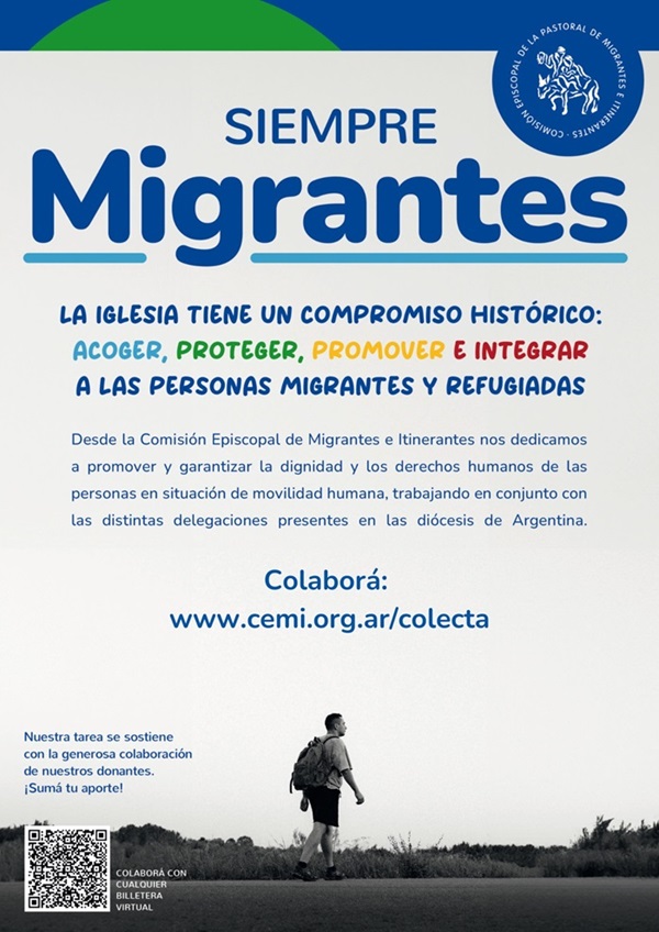La Comisión Episcopal de la Pastoral de Migrantes e Itinerantes (CEMI) animó a apoyar la Colecta Nacional de Ayuda al Migrante y Refugiado, que se realizará el sábado 30 de noviembre y el domingo 1° de diciembre, en todas las parroquias y capillas del país.