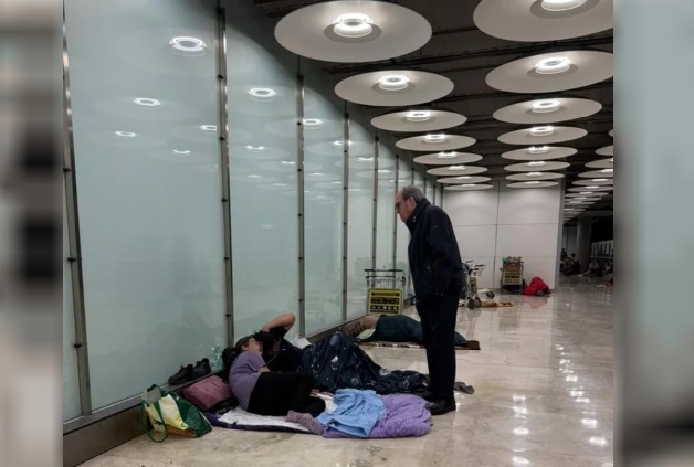 El sindicato UGT asegura que a 150 personas se les negó el acceso a la terminal, mientras que 170 durmieron en el interior. El gremio de trabajadores del aeropuerto (ASAE) aboga por el desalojo liso y llano, describió el sitio.