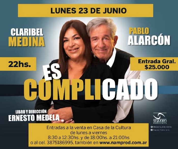Sobre el espectáculo mencionaron, “voy a presentar en la Casa de la Cultura para que gente la conozca. Este este lugar maravilloso donde vamos a hacer la función de Es complicado y para conocimiento del público de San Pedro de Jujuy que quedan entradas, pero tengo entendido que pocas. Así que a sumarse la gente que falta”.