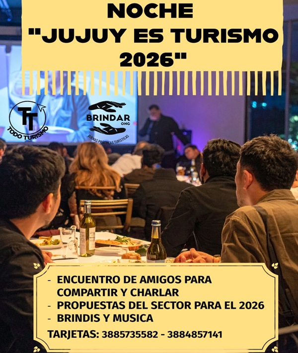Ya con agenda confirmada, este martes 31 de marzo a las 19:30 horas, en Espacio Güemes (Alvear 759) de San Salvador de Jujuy, se realizará la Noche “Jujuy es Turismo 2026”,organizado por la Ong. Brindar, Todo Turismo y con el apoyo de distintas instituciones de turismo local.