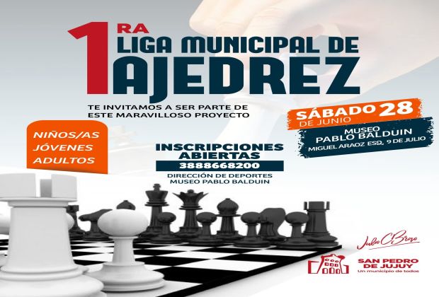 Este sábado 28 de junio, en el marco de las actividades por las Fiestas Patronales en Honor a San Pedro, se dará inicio a la Liga Municipal de Ajedrez, en las instalaciones del Museo Histórico, Arqueológico y de Arte Pablo Balduin de nuestra ciudad.