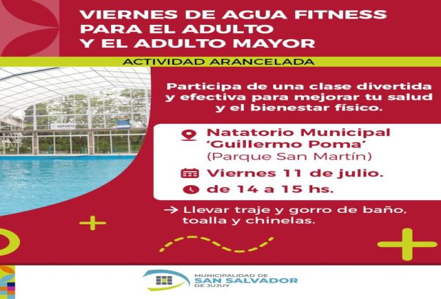 La Municipalidad de San Salvador de Jujuy invita a la comunidad a participar de una jornada de “Agua Fitness” especialmente pensada para adultos y adultos mayores.