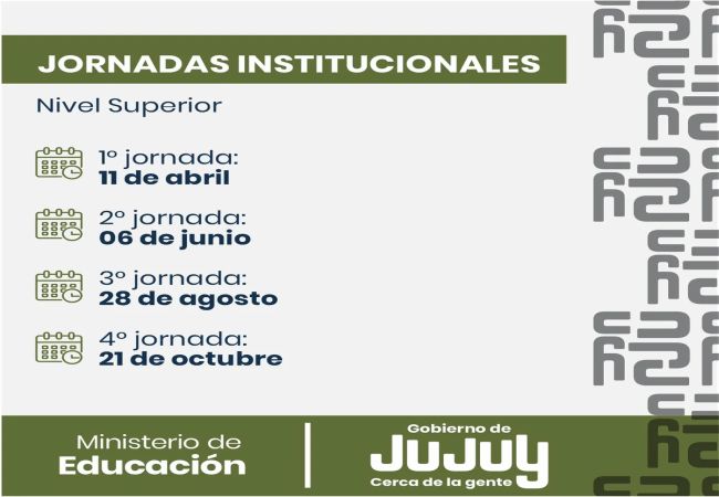 El Ministerio de Educación de Jujuy recordó que este viernes 11 de abril se llevará a cabo la Primera Jornada Institucional del Nivel Superior, prevista en el Anuario Escolar 2025.