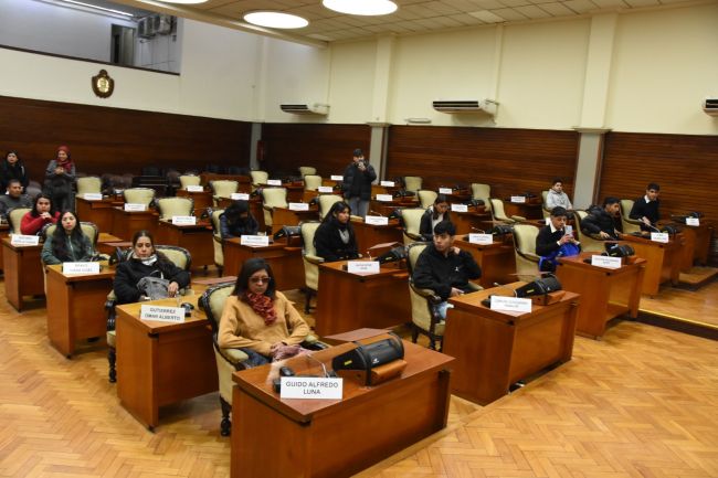 Fueron recibidos en el recinto de sesiones por las diputadas Agustina Guzmán y Malena Amerise, luego se sumó el diputado Adriano Morone. En la oportunidad, los alumnos tuvieron la posibilidad de participar en una jornada de diálogo con los legisladores.