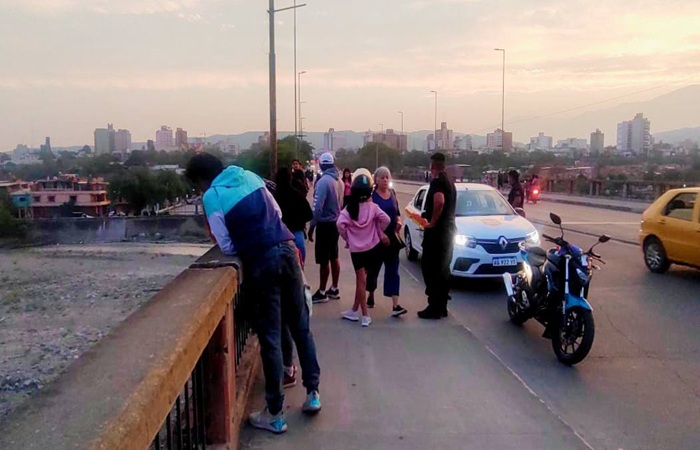 Según testigos, el joven descendió de un Ford Focus en movimiento para lanzarse al vacío, provocando que el auto chocara contra la baranda. A pesar de los esfuerzos, falleció horas después en el Hospital Pablo Soria.