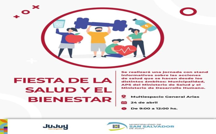 En el marco de las actividades por el Día Mundial de la Salud, la Municipalidad de San Salvador de Jujuy invita a la comunidad a participar de la “Fiesta de la Salud y el Bienestar”, una jornada abierta al público que se realizará el próximo 24 de abril en el multiespacio General Arias, de 9 a 12 horas.