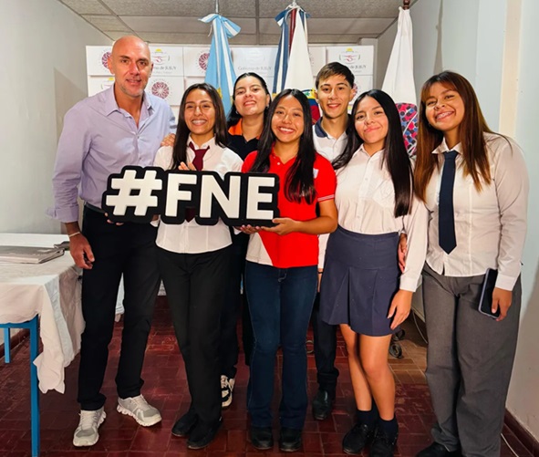 La nueva Comisión Estudiantil para la edición 74º de la FNE está conformada por Roxana Ruiz como Presidenta, Acompaña la Vicepresidenta Larisa Bejarano – Col. Nacional Nº 1 Teodoro S. d. Bustamante, Subsecretaria Valentina Aragon – Colegio Nº 2 Armada Argentina, Prosecretaria Samira Nieves – Colegio Maria Antonio Gianelli, Tesorero Joaquin Grafion – Provincial Nº 2 y Protesorero Sabrina Salas– Colegio Cristo Rey.