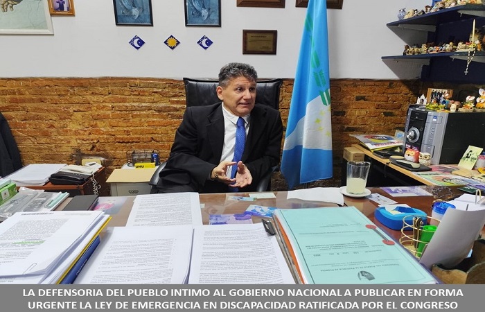 La Defensoría del Pueblo de la provincia de Formosa, intimo al Gobierno nacional a publicar en forma urgente la Ley de Emergencia en Discapacidad ratificada por el Congreso.