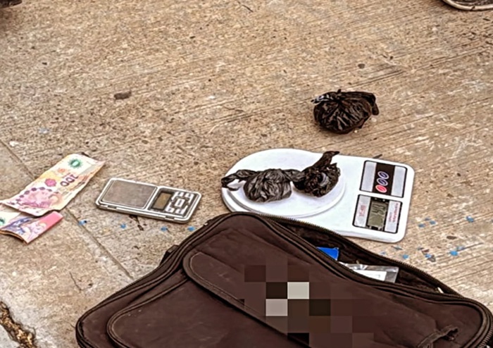 Bajo la supervisión de la fiscalía y en presencia de testigos, se requisó la mochila encontrando, 30 gramos de Clorhidrato de Cocaína/Pasta Base, 39 gramos de Marihuana, una balanza de precisión, $ 14.350 en efectivo y un teléfono celular.