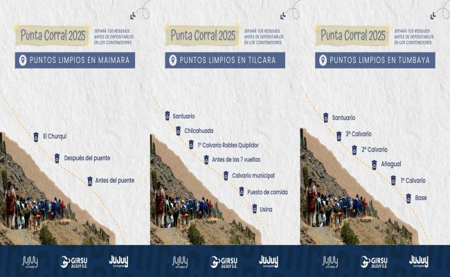 En el marco de la tradicional peregrinación a la Virgen de Punta Corral, GIRSU Jujuy S.E., en coordinación con los municipios de Tilcara, Maimará, Purmamarca y Tumbaya, llevará adelante un operativo de gestión de residuos sólidos urbanos (RSU) para minimizar el impacto ambiental y preservar el entorno natural, en marco de las políticas ambientales que fomenta el gobierno de la provincia de Jujuy a través del ministerio de Ambiente y Cambio Climático.