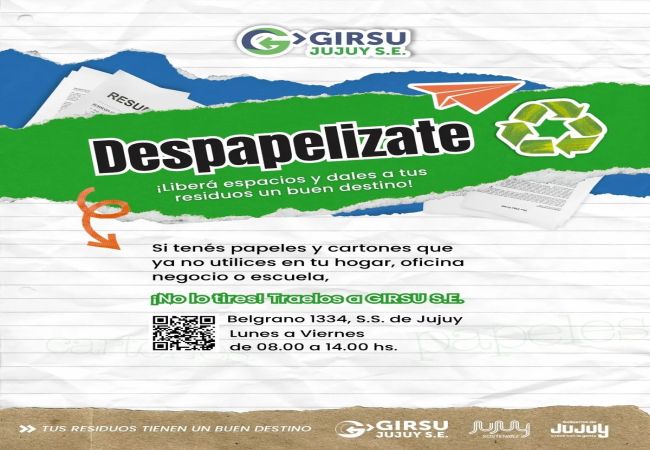 La empresa GIRSU Jujuy S.E. puso en marcha la campaña ambiental “Despapelizate”, que busca instalar la separación en origen del papel en el corazón de San Salvador de Jujuy. El objetivo es recuperar este material y reinsertarlo como materia prima dentro del sistema provincial de gestión integral de residuos.
