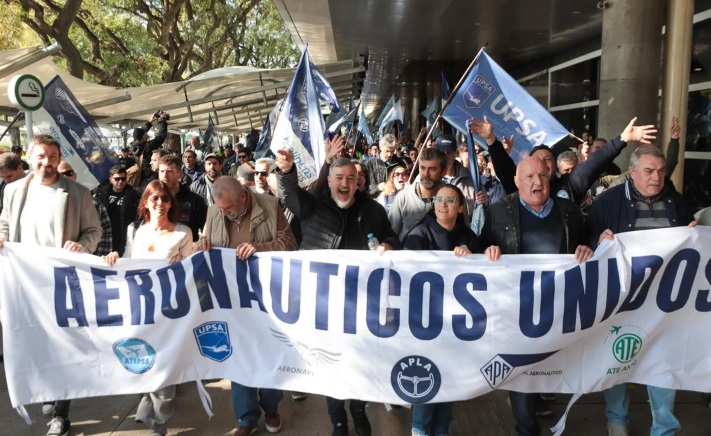 La protesta fue impulsada de forma conjunta por la Asociación del Personal Aeronáutico (APA), la Unión del Personal Superior y Profesional de Empresas Aerocomerciales (UPSA), la Asociación Argentina de Aeronavegantes (AAA), la Asociación de Técnicos y Empleados de Protección y Seguridad a la Aeronavegación (Atepsa) y ATE ANAC, el gremio que nuclea a los trabajadores de la Administración Nacional de Aviación Civil.