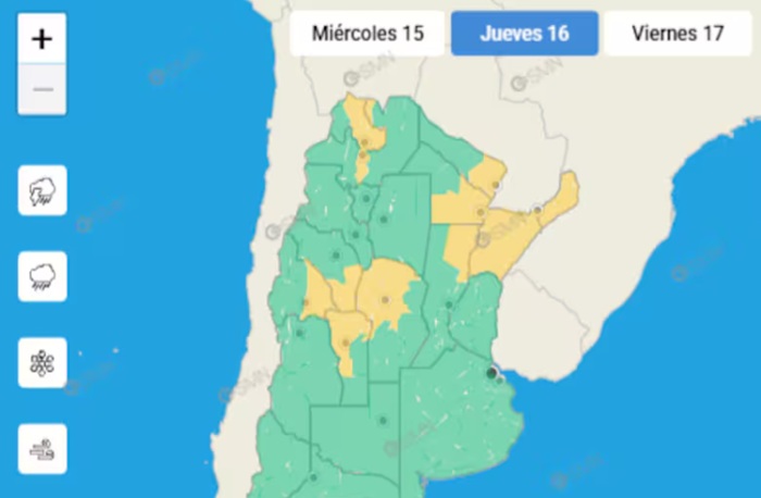 El Servicio Meteorológico Nacional (SMN) este jueves 16 de octubre emitió una serie de alertas amarillas por tormentas y vientos fuertes para distintas regiones.