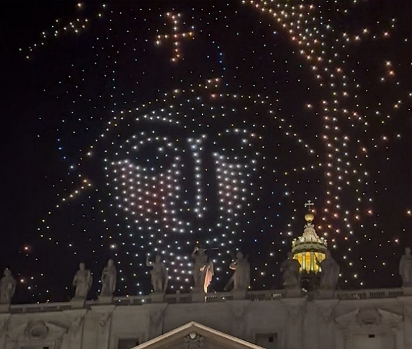 La Plaza de San Pedro fue el escenario de un tributo al Papa Francisco con miles de drones que formaron su imagen durante el concierto «Grace for the World».