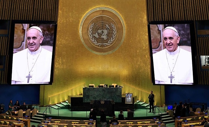 El Papa Francisco, señaló el secretario general de la ONU, habló sobre «el ideal de nuestra organización de una ‘familia humana unida y en armonía, trabajando no solo por la paz, sino en paz, trabajando no solo por la justicia, sino en un espíritu de justicia'».