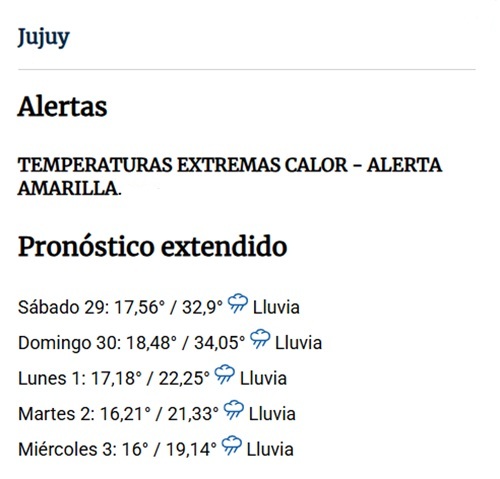 Pronóstico extendido para Jujuy