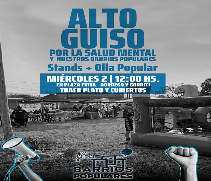 Alto Guiso se llevará a cabo este miércoles 2 de julio en la Plazoleta Evita de calles Dorrego y Gorriti, a partir de las 10 horas, habrá stand y olla popular.