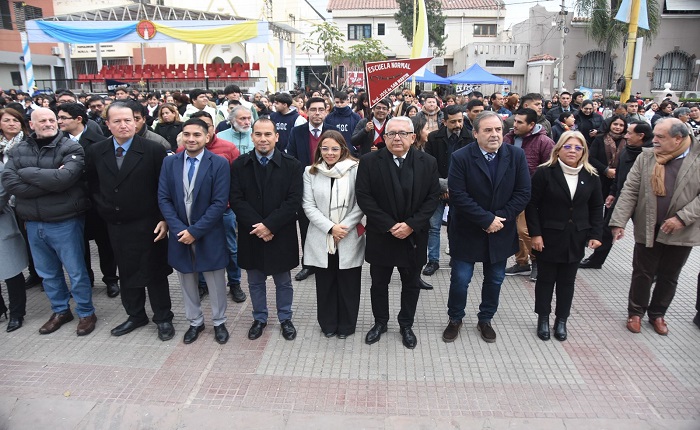 El vicegobernador de la provincia, Alberto Bernis, encabezó el acto central y destacó el valor comunitario de la jornada. La tradicional ceremonia reunió a estudiantes de los últimos años de nivel primario y secundario, quienes recibieron la tradicional bendición religiosa.