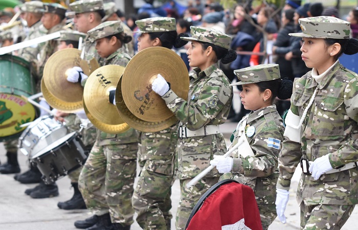 Finalizada la ceremonia religiosa, los egresados desfilaron por calle Mitre, frente al edificio municipal y la parroquia, acompañados por bandas de música juveniles y el acompañamiento del público presente.