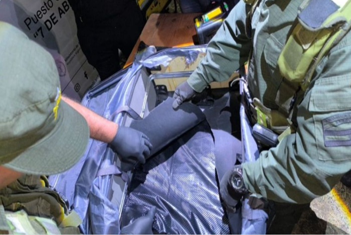 Mediante el empleo del escáner portátil, los uniformados detectaron una valija con un doble fondo, lo que motivó a profundizar la inspección.