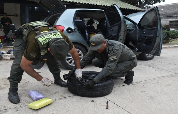 Ante esa situación, los uniformados pudieron visualizar, mediante el uso de escáner móvil, la existencia de cuerpos extraños. Inmediatamente, realizaron una inspección más minuciosa que derivó en la extracción de 10 paquetes rectangulares del ducto de ventilación del aire acondicionado, la rueda de auxilio y del asiento trasero.