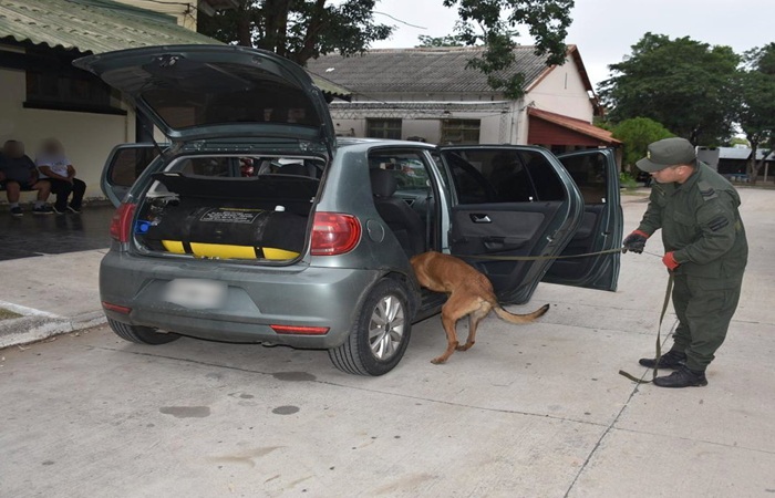 Al momento de la inspección, los funcionarios fueron alertados por el can detector de narcóticos, que marcó la posible presencia de estupefaciente dentro del vehículo.