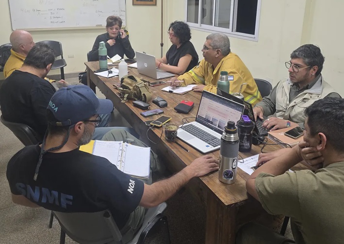 La Ministra de Ambiente y Cambio Climático, María Inés Zigarán, presidió una reunión operativa junto a los equipos de combate de incendios forestales de la provincia, para evaluar lo ocurrido las ultimas horas, sobre todo con los incendios de pastizales y arbustales, en zonas de interfase; es decir en áreas urbanas. Y para definir las próximas medidas tendientes a fortalecer el despliegue los próximos días.