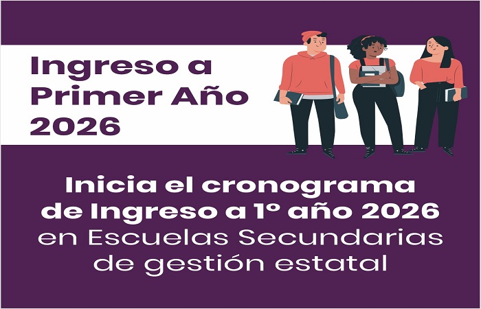 El Ministerio de Educación comunica que inicia el cronograma de ingreso a primer año 2026 en las escuelas secundarias de gestión estatal.