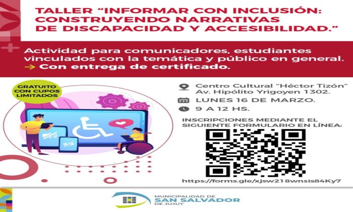 La Municipalidad de San Salvador de Jujuy invita a participar del taller “Informar con Inclusión: Construyendo Narrativas de Discapacidad y Accesibilidad”, una propuesta formativa destinada a comunicadores, estudiantes vinculados con la temática y público en general interesado en promover una comunicación más accesible y respetuosa.