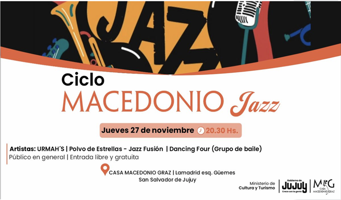 Este ciclo, organizado por el Ministerio de Cultura y Turismo del Gobierno de Jujuy en colaboración con la Casa Macedonio Graz, busca consolidar un espacio de encuentro para los amantes del jazz y acercar este género musical a nuevos públicos en un marco accesible y cercano.