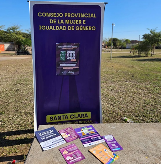 En el marco del trabajo en territorio, profesionales del Centro de Atención a Mujeres en Situación de Violencia de Santa Clara, brindaron información sobre la violencia de género con la entrega de folletería informativa sobre dispositivos que asisten en situaciones de vulnerabilidad.