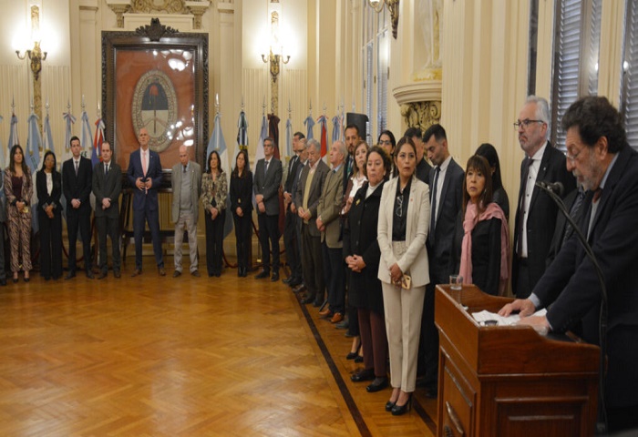 Luego del minuto de silencio en recordación a los abogados fallecidos, se escucharon las palabras alusivas del presidente del Colegio de Abogados y Procuradores, Dr. Ramiro Tizón, quien se refirió a la figura de Juan Bautista Alberdi y reflexionó sobre la función de los letrados.