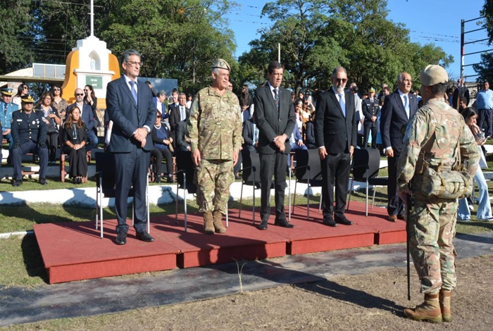 Seguidamente, se llevó a cabo una invocación religiosa a cargo del obispo diocesano de Jujuy, Monseñor César Daniel Fernández, quien expresó: “Queremos recordar a todos los que dejaron su vida en combate y renovar el deseo de servir a la patria, construyéndola en el servicio y la solidaridad”.