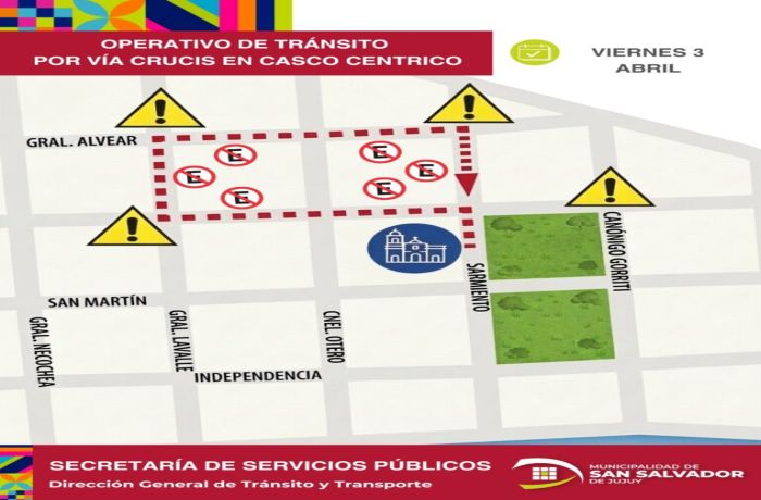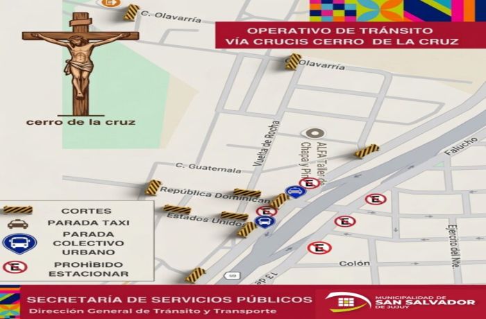 La Dirección de Tránsito y Transporte, dependiente de la Secretaría de Servicios Públicos de la Municipalidad de San Salvador de Jujuy, informó que con motivo de la realización del tradicional Vía Crucis con destino al Cerro de la Cruz, en el barrio Cerro Las Rosas, se implementarán cortes de tránsito y restricciones vehiculares los días jueves 2 y viernes 3 de abril.