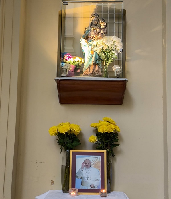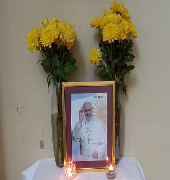 Fieles católicos entronizaron la imagen del Papa Francisco en la Casa de Gobierno, donde elevan plegarias por el descanso eterno del Santo Padre.