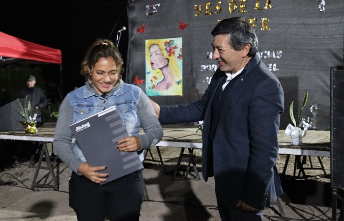 La entrega fue propiciada por la SECOTyH y el intendente del la ciudad de El Carmen, Víctor Hugo González, quien encabezó la entrega en un acto social y cultural que celebró marzo como el mes de la Mujer, acompañado por el Secretario de Cultura de la provincia, José Rodríguez Bárcena, y el secretario de Turismo, Cultura y Educación de El Carmen, Raúl «Tatin» Berno.