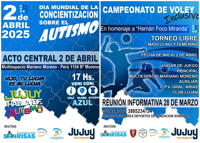 La Fundación Sonrisas que trabaja a favor de la inclusión de las personas con Trastorno del Espectro Autista organizará el día miércoles 2 de abril un evento de concientización denominado “Jujuy Habla de Autismo 2025”.