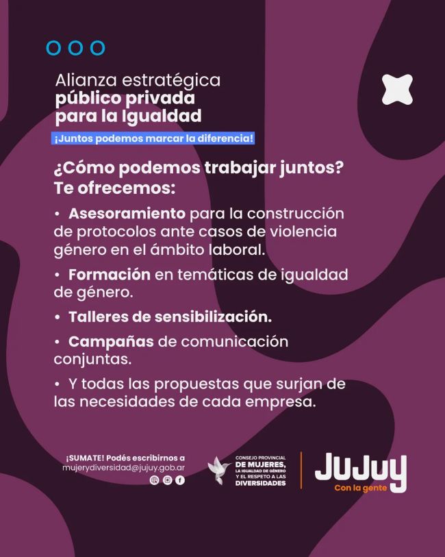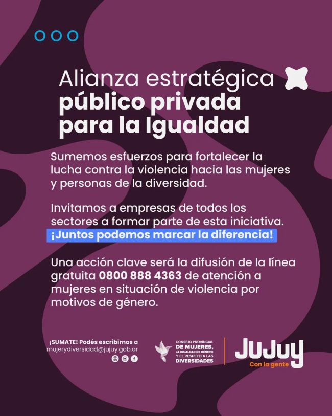 A través del Consejo Provincial de Mujeres, el Gobierno de Jujuy avanza en diferentes estrategias frente a la violencia de género, en este caso invitando al sector privado a fortalecer la iniciativa «Impulsar Igualdad» cuyo especial trabajo en territorio se realiza con los municipios y comisiones municipales de la Provincia, además de las acciones articuladas con todos los organismos públicos.