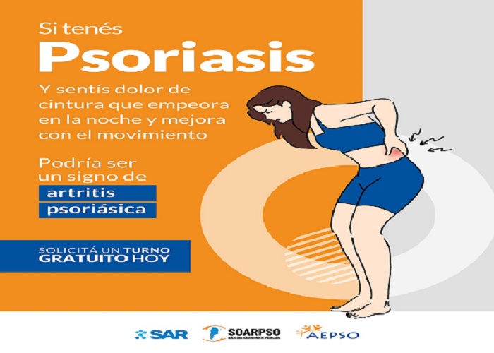 La Sociedad Argentina de Reumatología (SAR) y la Sociedad Argentina de Psoriasis (SOARPSO) junto a la Asociación para el Enfermo de Psoriasis y Artritis Psoriásica (AEPSO) llevarán a cabo una campaña nacional de detección gratuita de enfermedad psoriásica, cuyas manifestaciones más comunes son la psoriasis y la artritis psoriás