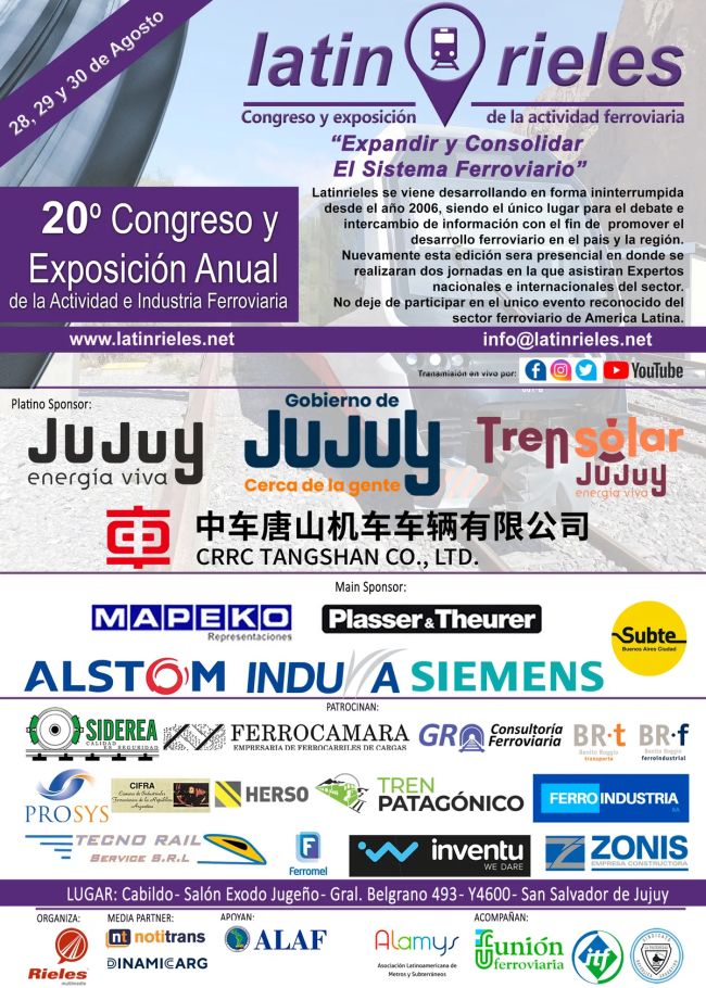 Del 28 al 30 de agosto se realizará en el Cabildo Histórico de Jujuy, la 20º edición del Congreso y Exposición de la Actividad e Industria Ferroviaria – LATINRIELES, que contará con la participación de delegaciones de Perú, Chile, Bolivia, Uruguay, China y Alemania.