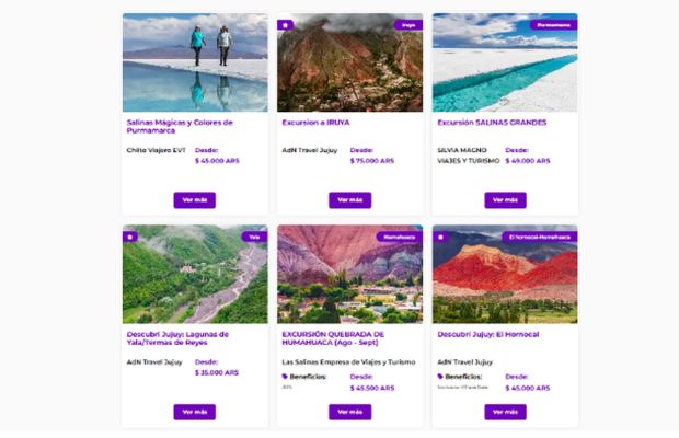 La visibilidad fue constante: el logo de Jujuy estuvo presente en la web oficial y en envíos de email marketing a más de 130.000 usuarios. Los destinos que despertaron mayor interés fueron San Salvador de Jujuy, Purmamarca, Salinas Grandes, Tilcara y Humahuaca, con ofertas que incluían descuentos de hasta el 30% y opciones de financiación especiales.