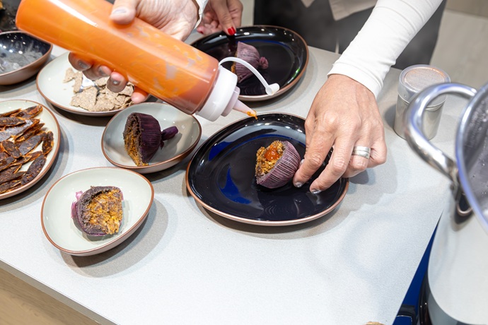 Por otro lado, todas las preparaciones fueron presentadas en piezas de cerámica de Colbo, marca mendocina de diseño en gres rojo presente en restaurantes de alta cocina y en la colección del MoMA de Nueva York, reforzando el vínculo entre gastronomía, arte y diseño argentino.