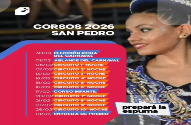 La Comisión Ejecutiva de Corsos (COMECOR) dio a conocer el cronograma y el esquema organizativo de los Corsos de San Pedro de Jujuy 2026, que se desarrollarán a lo largo de cuatro fines de semana consecutivos, consolidándose una vez más como los corsos más importantes de la provincia.