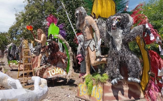 La presidenta de la COMECOR (Comisión Ejecutiva de los Corso), Erica Marcantony, junto a parte de la Comisión Ejecutiva de los Corsos, se hizo presente hoy en el espacio de trabajo de la comparsa indígena Los Tobas, quienes sufrieron daños debido a la intensa lluvia de anoche y solicitaron colaboración.