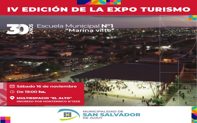 Este sábado 16 de noviembre, de 19 a 22 horas, la Escuela Municipal Marina Vilte invita a todos los vecinos a la cuarta edición de la Expo-Turismo «Jujuy: Riqueza Cultural y Gastronómica a Través del Turismo».