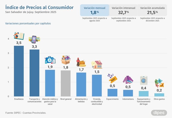 La inflación por el mes de setiembre en la provincia de Jujuy subió 1,8% de acuerdo a publicado por la DiPEC.