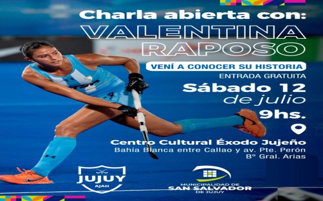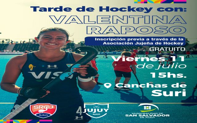 La Municipalidad de San Salvador de Jujuy anunció la llegada de Valentina Raposo, jugadora de la Selección Argentina de hockey sobre césped, quien estará en nuestra ciudad los días viernes 11 y sábado 12 de julio.