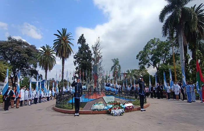 Los actos conmemorativos dieron inicio en la plaza central de la ciudad, con el izamiento del pabellón nacional y prosiguió con la entonación de las estrofas del himno nacional.