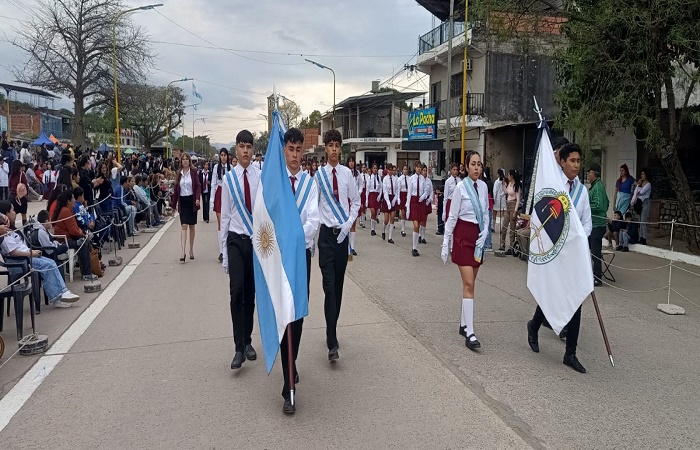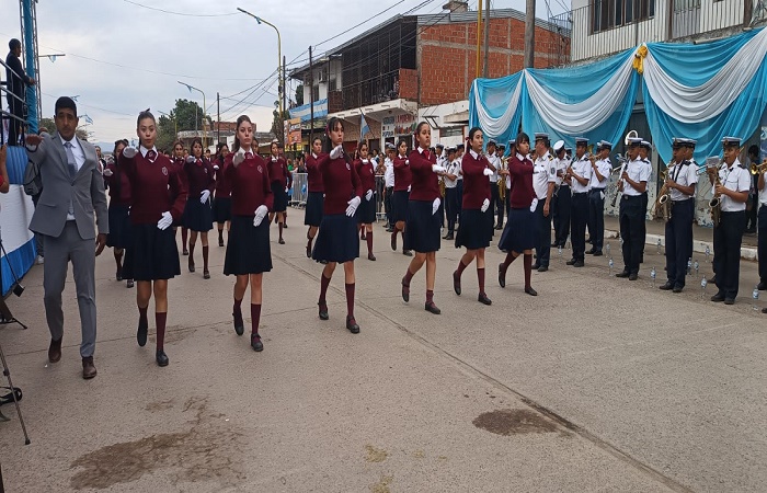 Desfilaron 28 instituciones educativas, entre nivel primario, secundario y terciario. También participaron escuelas deportivas, de danzas folclóricas, instituciones intermedias y personal policial.