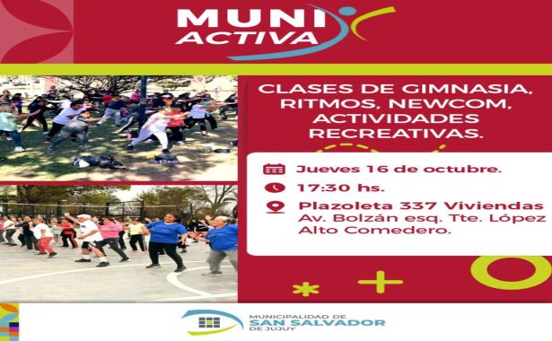 La Municipalidad de San Salvador de Jujuy invita a toda la comunidad a participar de una nueva edición de “Muni Activa”, una propuesta que promueve el deporte, la salud y la recreación para todas las generaciones.